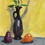 Vase and Fruit on Yellow